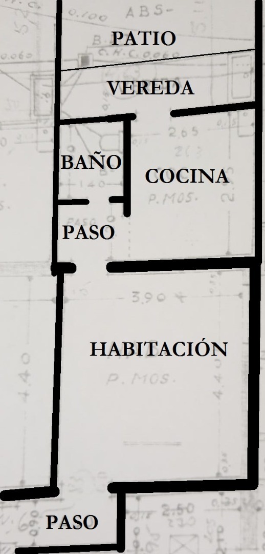 Departamento de un dormitorio (4.4x3.90), cocina (2.95x2.65) baño (1.60x1.40) y patio (3.90x5.10). Interno.